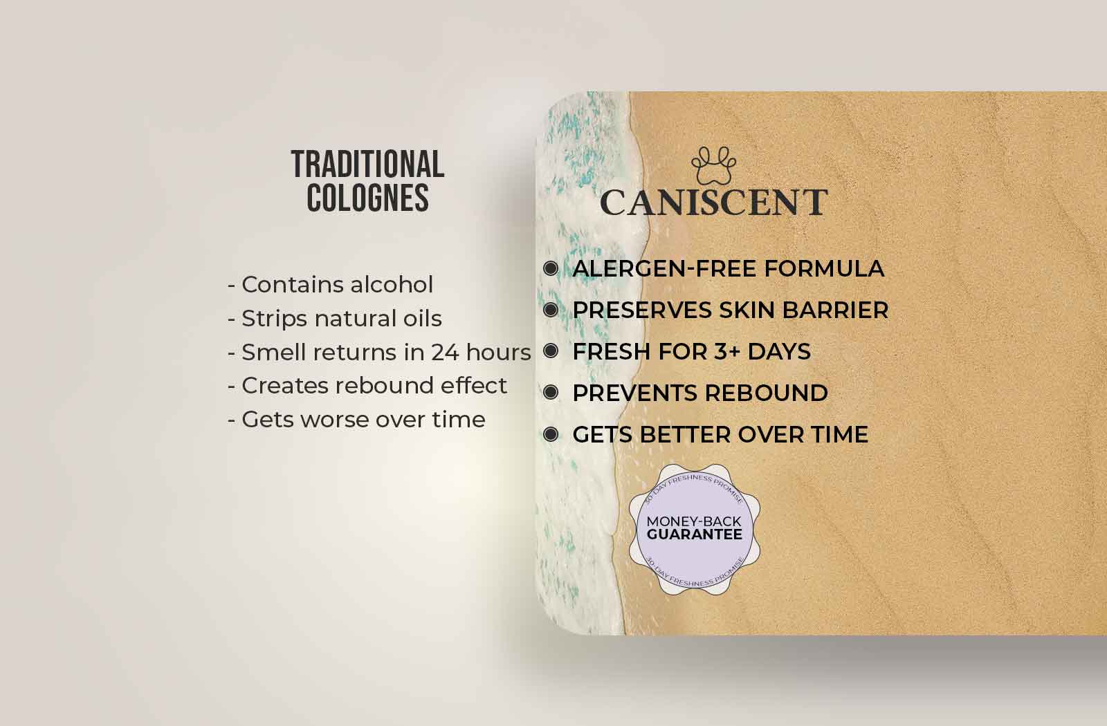 Caniscent breaks this cycle. Our formula works with your dog's natural biology instead of fighting against it, delivering 3+ days of freshness without the rebound.